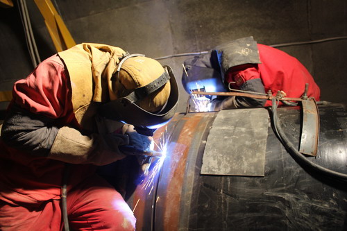在隧道內(nèi)、河谷段、山坡上都有管道人的身影。針對目前天氣依然寒冷的情況,為確保施工質(zhì)量,員工嚴(yán)格按照施工要求,做好焊接前加熱和保溫工作。為保證工期,員工實(shí)行兩班倒施工作業(yè)。