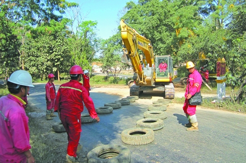 除了施工伴行路以外,管道局中緬管道項目部還為村民修建了11公里的道路,投資400余萬緬幣(約合人民幣3.2萬元)為學校打井,解決了孩子們的飲水難題,并送去了書包、日記本和藤球等。一段施工結(jié)束后,村民們含淚相送,場面感人。記者在采訪時,還遇到村民主動給機組送來自制的點心。