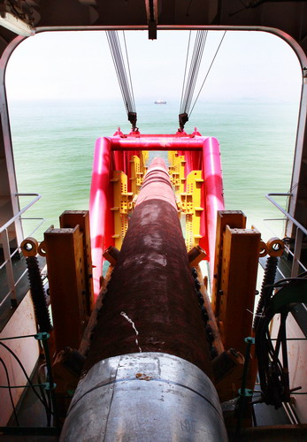 香港支線深港海底管道分兩段,分別為求雨嶺—大鏟島段和大鏟島—香港龍鼓灘段。管道全長(zhǎng)約30公里,設(shè)計(jì)年輸氣能力為60億立方米。管道要穿越5條航道和一個(gè)國(guó)家一級(jí)動(dòng)物保護(hù)區(qū),施工難度大?!〗刂聊壳?,香港支線管道已敷設(shè)1.2公里,挖泥182萬(wàn)立方米。